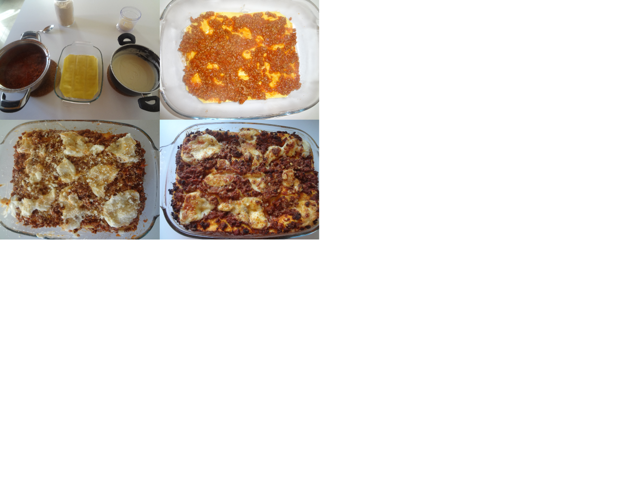 Ricetta veloce perchè il ragù lo potete preparare anche la sera prima. Usate le lasagne pronte che non si devono precuocere...così comporrete le vostre lasagne in un attimo. Preparate la besciamella e scaldate il ragù. Grattuggiate il grana. Versate un cucchiaio di besciamella su una teglietta da forno, metteteci una sfoglia di lasagna, ricoprite con ragù e versate alcune cucchiaiate di besciamella sopra il ragù. Cospargete di grana. Ripetere gli strati allo stesso modo fino ad esaurimento dei prodotti. Nell'ultimo strato oltre al grana spruzzare anche un po' di pangrattato.